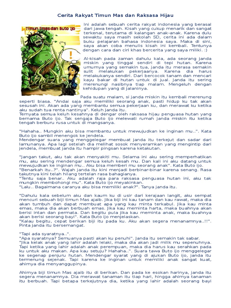 Cerita Rakyat Timun Mas Dan Raksasa Hijau Pdf